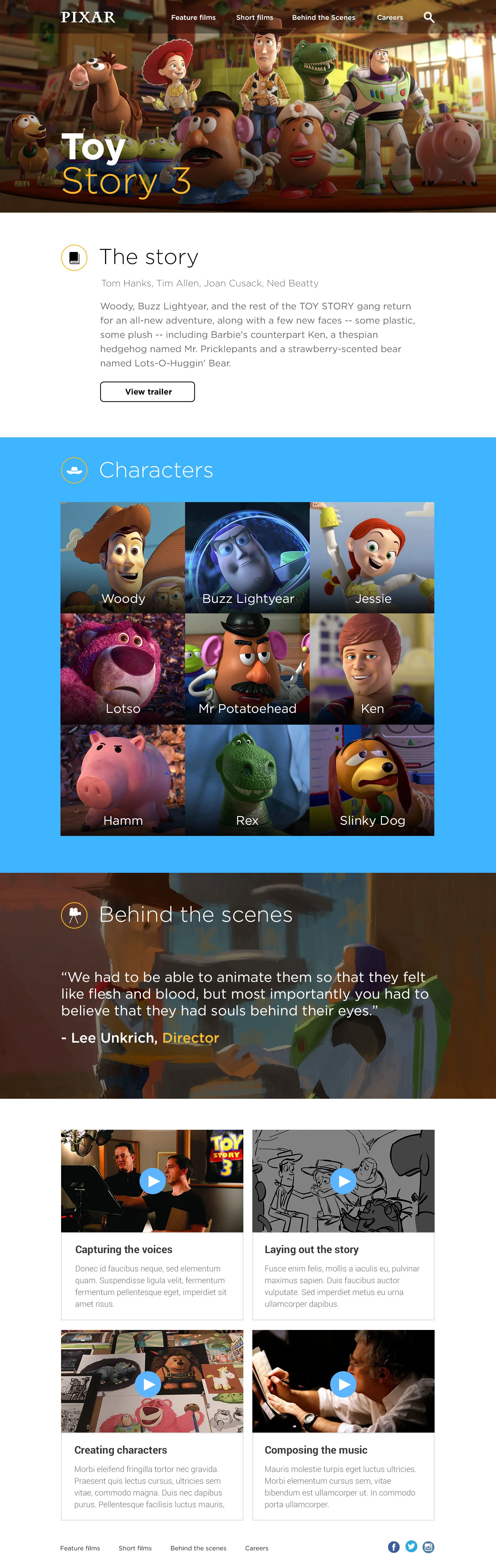 Like many other people around the world I am a huge Pixar film fan. So it was a surprise when I went onto their website to discover it was looking very dated and disengaging. For being the pioneers of visual effect and animation their website wasn't reflecting this.